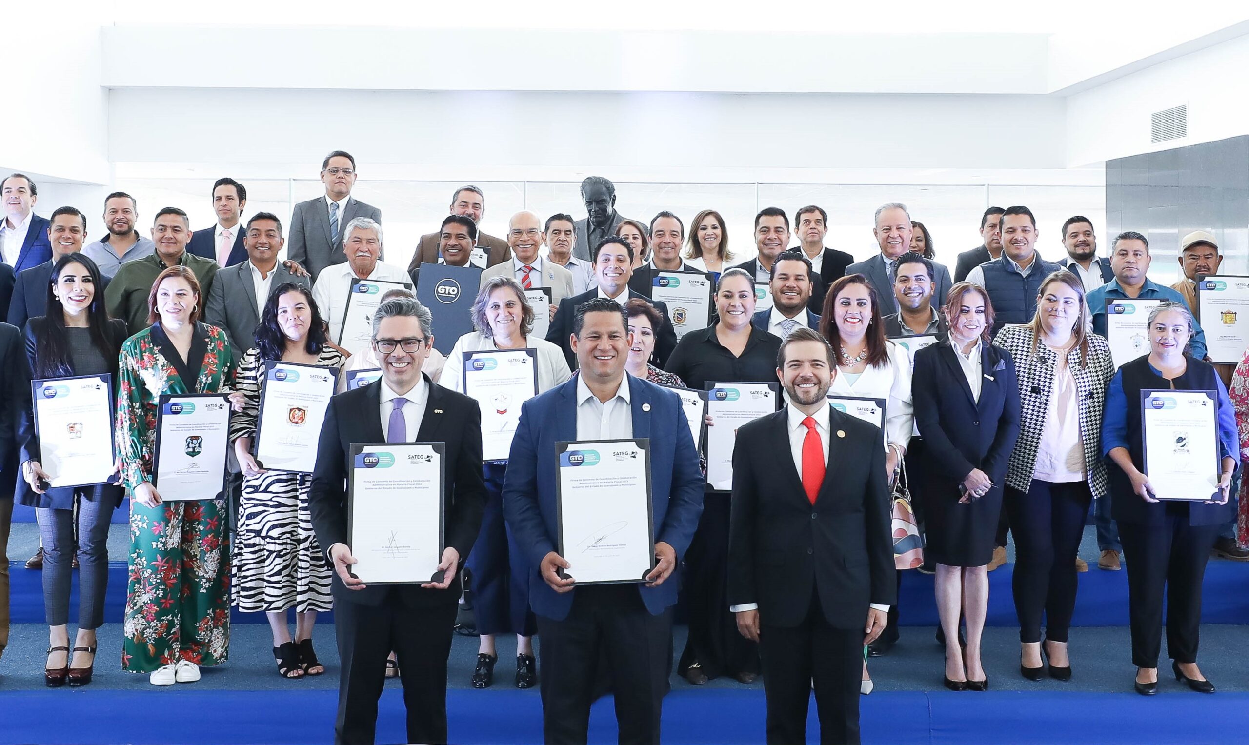 A nombre de los 46 presidentes municipales, hablaron la alcaldesa de Acámbaro, Claudia Silva Campos; el de Doctor Mora, Edgar Javier Reséndiz Jacobo, y de San Luis de la Paz, Luis Gerardo Sánchez, quienes coincidieron en refrendar su compromiso de seguir trabajando para mejorar las finanzas de sus respectivos municipios y dar un mejor servicio a la población.