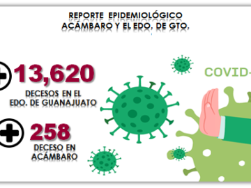 Acámbaro llega a los 258 decesos por pandemia. Guanajuato alcanza los 13,610 decesos. Catorce más que el día anterior. Avance de vacunación en el estado de Guanajuato .
