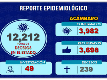Acámbaro llegó a los 239 decesos por pandemia. Guanajuato alcanza los 12,186 decesos.Treinta más que el día anterior. Las mismas medidas de prevención contra la COVID19 son efectivas para la […]