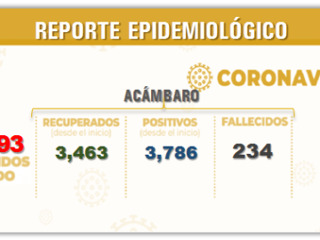 Acámbaro llega a los 234 decesos por pandemia. Guanajuato alcanza los 11,793 decesos, quince más que el día anterior. Usa CUBREBOCAS, es la mejor manera de evitar infectarte del COVID-19. […]
