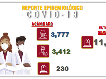 Acámbaro llega a los 230 decesos por pandemia. Guanajuato alcanza los 11,701 decesos, diez más que el día anterior. Utiliza correctamente tu cubrebocas y sigue todas las recomendaciones para un […]