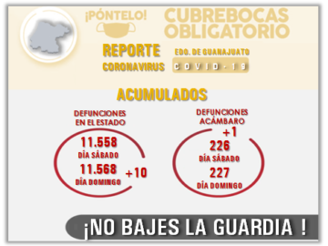 Acumulado del Día Sábado 21 de Agosto de 2021. Guanajuato alcanza los 11,558 decesos. Acámbaro se mantiene en 226. Acumulado del Día domingo 22 de Agosto de 2021. El estado […]