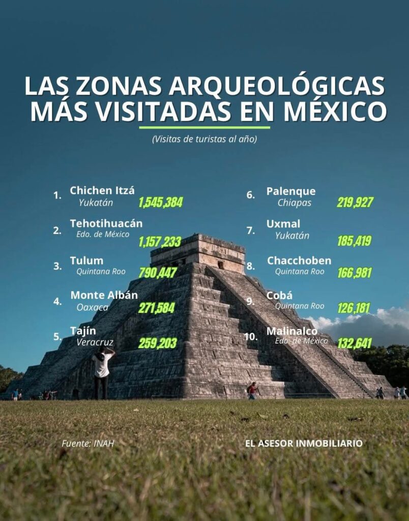 Chichen Itzá es la zona arqueológica de México más visitada Publicada el 12 febrero, 2026 Fuentes: INAH / El Asesor Inmobiliario Compartir en redes socialesTweet Share on Telegram (Se abre en una ventana nueva) Telegram Share on WhatsApp (Se abre en una ventana nueva) WhatsApp Me gusta esto:Me gusta Cargando... Relacionado Navegación de entradas « Entre las recomendaciones para el buen uso del Whatsapp figura el usarlo para lo que fue creado; no es conveniente mezclar temasGuanajuato facilita la inserción laboral de los guanajuatenses »