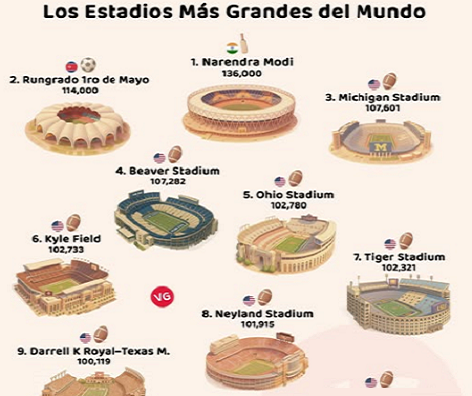 De los 11 Estadios más grandes del mundo, 8 se encuentran en Estados Unidos de América Publicada el 16 junio, 2025 Fuentes: FIFA / MLS Compartir en redes socialesTweet Share on Telegram (Se abre en una ventana nueva) Telegram Share on WhatsApp (Se abre en una ventana nueva) WhatsApp Me gusta esto:Me gusta Cargando... Relacionado Navegación de entradas « Los Centros Migrantes siembran oportunidades en GuanajuatoLa SEG impulsa la Jornada por la Paz y contra las Adicciones »