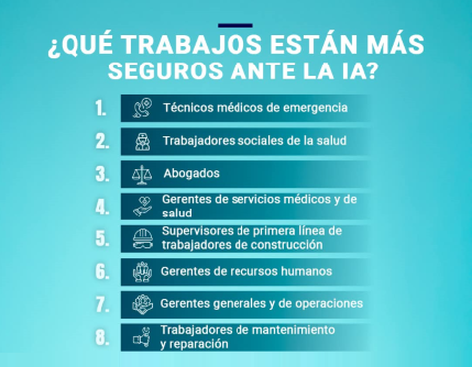 Diez serían los trabajos más seguros, tras la aparición de la Inteligencia Artificial Publicada el 3 noviembre, 2025 Fuentes: Esquimoz / El CEO Compartir en redes socialesTweet Haz clic para compartir en Telegram (Se abre en una ventana nueva) Telegram Haz clic para compartir en WhatsApp (Se abre en una ventana nueva) WhatsApp Me gusta esto:Me gusta Cargando... Relacionado Navegación de entradas « Hoy en día, se dispone de una clasificación de sismos, a partir de la intensidad; la escala máxima es de 10. Septiembre es un “mes de sismos”.Vigente, la BAIT de la PROFECO, una plataforma de conciliación en línea »