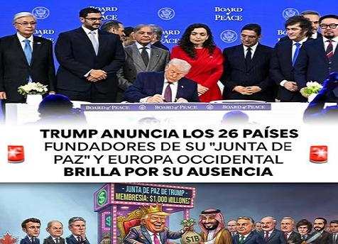 Donald Trump integra la llamada: Junta de Paz. Busca suplir a la ONU y la integran en el inicio, 26 países. Publicada el 4 febrero, 2026 Fuentes: Casa Blanca / Consciente Compartir en redes socialesTweet Haz clic para compartir en Telegram (Se abre en una ventana nueva) Telegram Haz clic para compartir en WhatsApp (Se abre en una ventana nueva) WhatsApp Me gusta esto:Me gusta Cargando... Relacionado Navegación de entradas « El Real Madrid es el equipo más valioso del 2025, con una cifra de 6,700 millones de dólaresEl Inquisidor: Por el Acueducto Solís-León, son “muy intensas” las reuniones informativas. Las extorsiones, ahora son a través de la oferta de empleo en los EEUU. En Acámbaro, la principal resistencia a la obra del Acueducto Solís-León. Una vez más, alertan contra el sarampión y refuerzan la campaña de vacunación. »