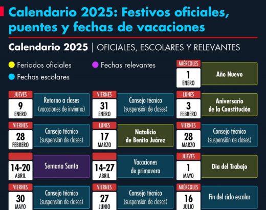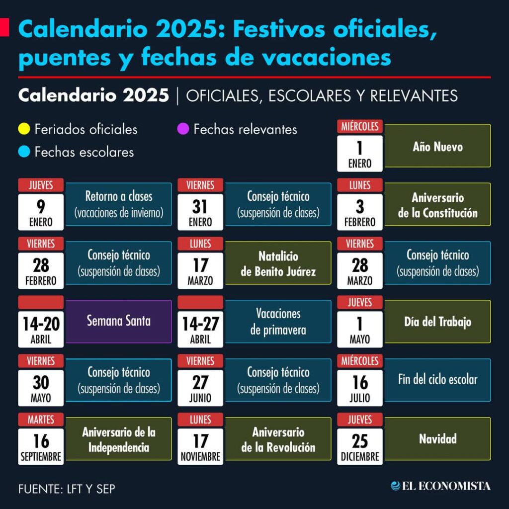 Durante el 2025, serían 16 los días no laborables. Conozca el Calendario. Este 1o. de mayo no se trabaja. Publicada el 30 abril, 2025 Fuentes: LFT / SEP / El Economista Compartir en redes socialesTweet Share on Telegram (Se abre en una ventana nueva) Telegram Share on WhatsApp (Se abre en una ventana nueva) WhatsApp Me gusta esto:Me gusta Cargando... Relacionado Navegación de entradas « En el sistema numérico,los romanos empleaban letras y no números para llevar la contabilidadEl Inquisidor: Vigente, la gestión de obras para Acámbaro ante el gobierno estatal. Necesaria, una campaña contra la basura; urge una ciudad más limpia. Polémico, el “extravío” del proyecto del Puente Elevado para Acámbaro. Se analizan áreas para la construcción de vivienda popular en el municipio. »