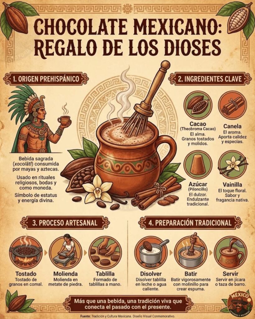 El Chocolate es una aportación de México al mundo. Entre sus ingredientes, incluye el cacao y la vainilla. Publicada el 30 marzo, 2026 Fuente: México, Leyendas e Historias Compartir en redes socialesTweet Share on Telegram (Se abre en una ventana nueva) Telegram Share on WhatsApp (Se abre en una ventana nueva) WhatsApp Me gusta esto:Me gusta Cargando... Relacionado Navegación de entradas « Guanajuato consolida su posición como líder en la inversión extranjera En Latinoamérica hay 6 destacados escritores que han logrado el Nobel de Literatura, entre ellos, Pablo Neruda »
