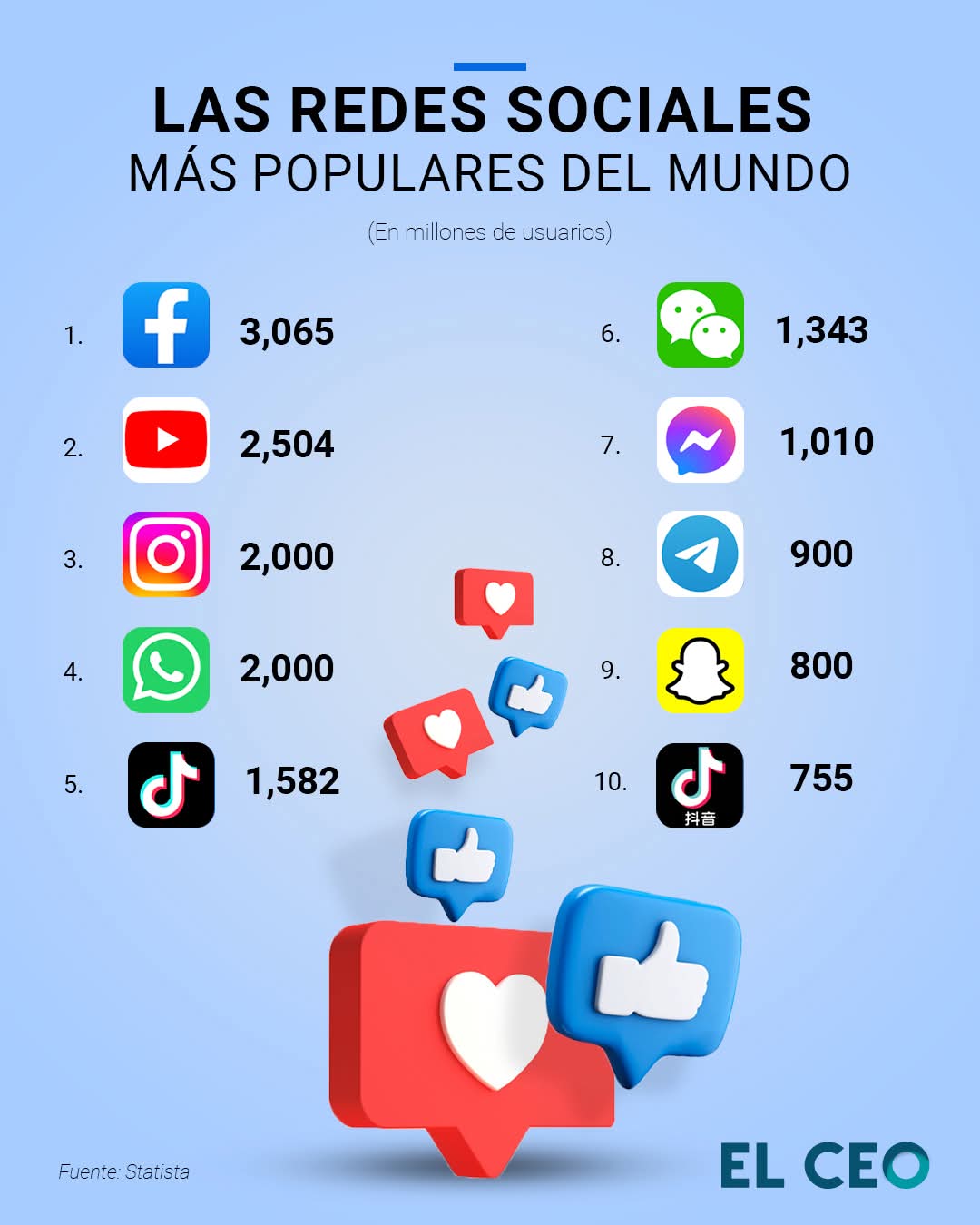 El Facebook es la red social más popular, seguida del You Tube; el WhatsApp ocupa la cuarta posición Publicada el 11 septiembre, 2025 Fuentes: Statista / EL CEO Compartir en redes socialesTweet Share on Telegram (Se abre en una ventana nueva) Telegram Share on WhatsApp (Se abre en una ventana nueva) WhatsApp Me gusta esto:Me gusta Cargando... Relacionado Navegación de entradas « Gobierno de Guanajuato fortalece el empleo y promueve el autoempleo“Marca Guanajuato” genera y conserva más de 200 mil empleos »