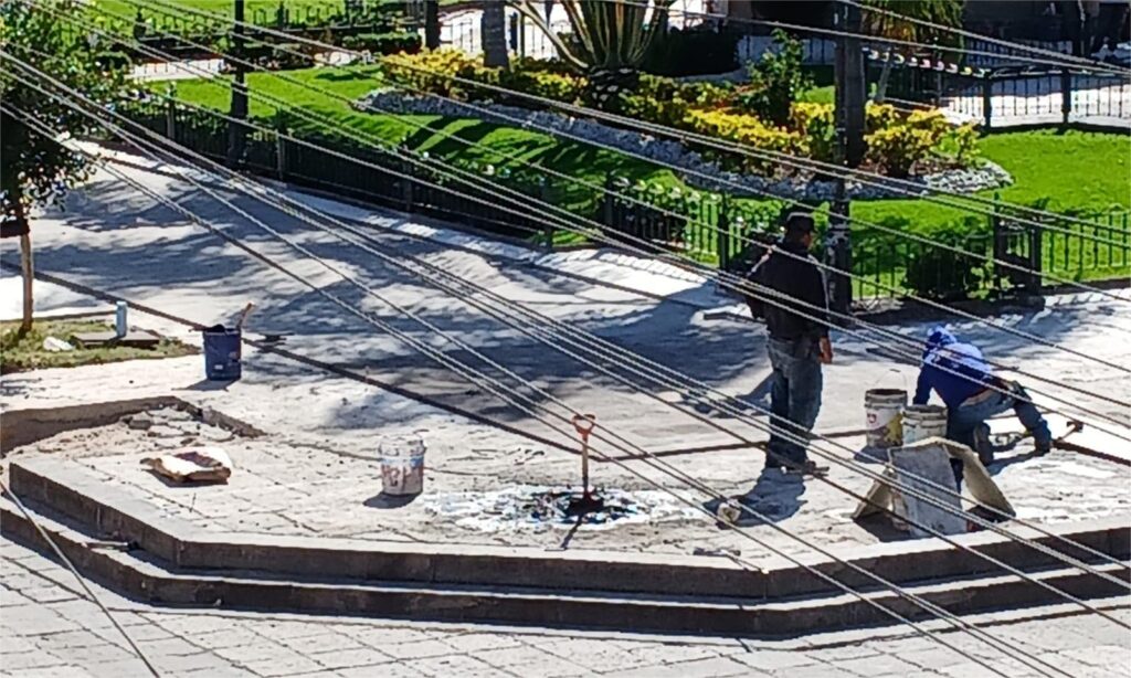 Un “ANTES” y un “AHORA” de la obra de remodelación del Jardín “Independencia” muestra muy poco “avance”, cuyo nuevo color del mosaico no gusta a la población.