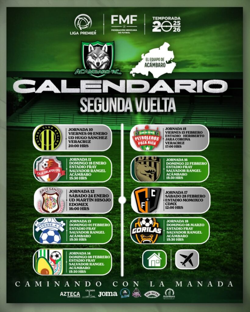 El Lobos del Acámbaro inicia este 9 de enero la 2a. Vuelta de la Liga Premier, Serie B; engfrenta al Racing Publicada el 8 enero, 2026 Fuentes: Liga Premier / FMF Compartir en redes socialesTweet Haz clic para compartir en Telegram (Se abre en una ventana nueva) Telegram Haz clic para compartir en WhatsApp (Se abre en una ventana nueva) WhatsApp Me gusta esto:Me gusta Cargando... Relacionado Navegación de entradas « Entregan la rehabilitación del camino rural a El Rodeo, en AcámbaroSudán, Egipto y México son las naciones con más pirámides en el mundo »