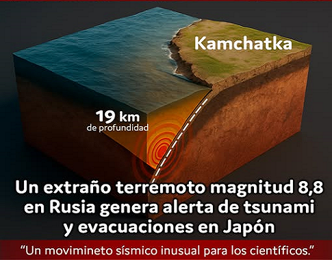 El Sismo de Rusia de 8.8 grados afectó una amplia región de Asia, debido en parte a las alteraciones que han sufrido las placas tectónicas por el uso de energía atómica en el Pacífico. Publicada el 17 agosto, 2025 Fuentes: Sismólogos y Científicos Compartir en redes socialesTweet Share on Telegram (Se abre en una ventana nueva) Telegram Share on WhatsApp (Se abre en una ventana nueva) WhatsApp Me gusta esto:Me gusta Cargando... Relacionado Navegación de entradas « Guanajuato ‘rompe’ récord en la producción automotrizGuanajuato consolida su posición como líder en la inversión extranjera »