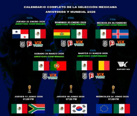 El TRI de la Selección Mexicana tendrá cinco partidos de preparación, antes de debutar en el Mundial 2026 Publicada el 3 enero, 2026 Fuentes: FMF / FIFA Compartir en redes socialesTweet Share on Telegram (Se abre en una ventana nueva) Telegram Share on WhatsApp (Se abre en una ventana nueva) WhatsApp Me gusta esto:Me gusta Cargando... Relacionado Navegación de entradas « El Gobierno de Guanajuato refuerza el compromiso con la inclusión laboral de las mujeresLa Fiera del Club León inicia la actividad en el Torneo de Clausura 2026 ante el Cruz Azul y cierra contra el Bicampeón Toluca »