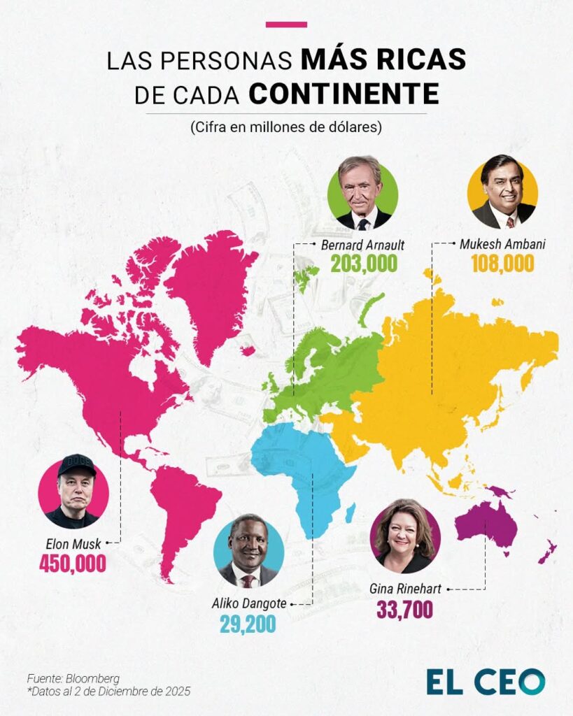 Elon Musk es el hombre más rico de América Latina y del mundo Publicada el 8 enero, 2026 Fuentes: Bloomberg / EL CEO Compartir en redes socialesTweet Haz clic para compartir en Telegram (Se abre en una ventana nueva) Telegram Haz clic para compartir en WhatsApp (Se abre en una ventana nueva) WhatsApp Me gusta esto:Me gusta Cargando... Relacionado Navegación de entradas « Guanajuato aplica el modelo de las microcredencialesEntregan la rehabilitación del camino rural a El Rodeo, en Acámbaro »