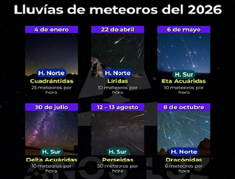 En el 2026, se podrá apreciar las lluvias de meteoros durante 13 días a lo largo del año Publicada el 2 enero, 2026 Fuentes: NASA / UNAM Compartir en redes socialesTweet Share on Telegram (Se abre en una ventana nueva) Telegram Share on WhatsApp (Se abre en una ventana nueva) WhatsApp Me gusta esto:Me gusta Cargando... Relacionado Navegación de entradas « “Marca Guanajuato” genera y conserva más de 200 mil empleosGuanajuato destaca en el sector manufacturero durante enero-abril de 2025 »