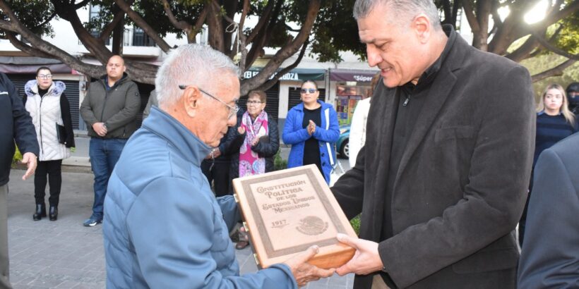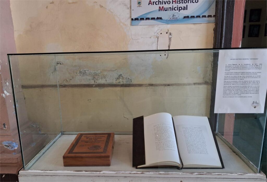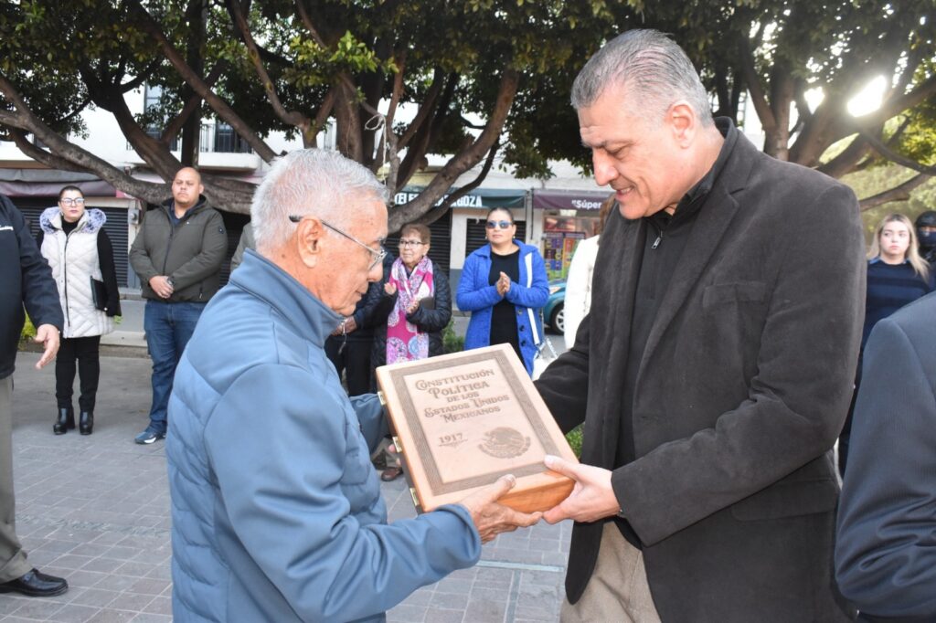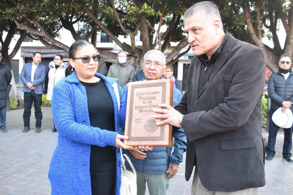 Acámbaro, Gto.- En el marco del 109 Aniversario de la Promulgación de la Carta Magna de 1917, el Ayuntamiento recibió de manos del señor Antonio Novoa Acevedo, Expresidente Municipal (2003-2006), una copia de la norma suprema del país, a fin de que sea exhibida y pueda consultarse en el Archivo Histórico Municipal “Centenario”.
