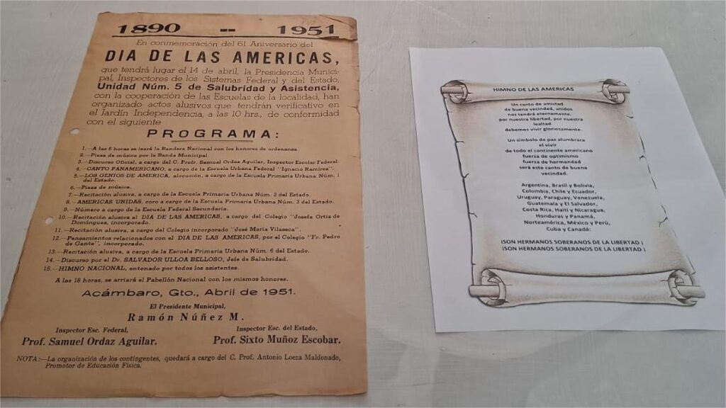 Acámbaro, Gto.- Una interesante exposición es la que se muestra en el Archivo Histórico Municipal “Centenario”, en relación a temas sobre la milicia y el himno del “Día de las Américas”.