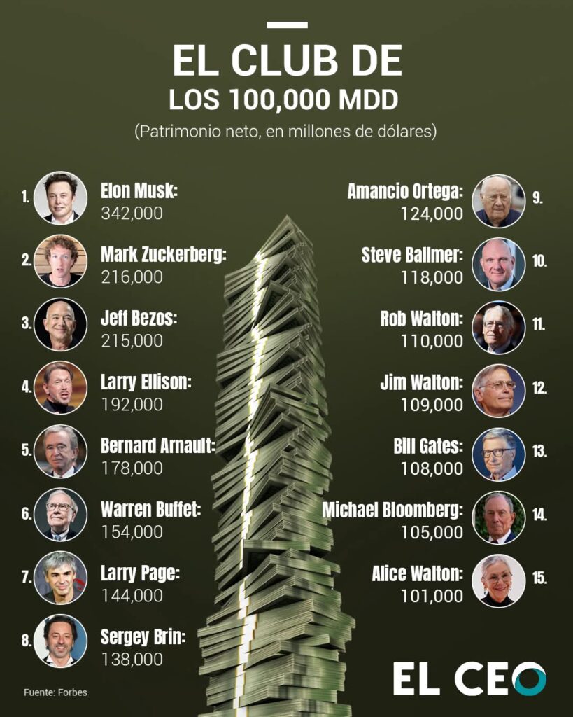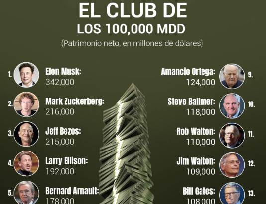 En el “Club de los 100”, Elon Musk es el hombre más rico del planeta Publicada el 2 mayo, 2025 Fuentes: Forbes / EL CEO Compartir en redes socialesTweet Share on Telegram (Se abre en una ventana nueva) Telegram Share on WhatsApp (Se abre en una ventana nueva) WhatsApp Me gusta esto:Me gusta Cargando... Relacionado Navegación de entradas « En el 2025, la PROGRAMACIÓN del Periódico Digital “El Ciudadano” amplía y fortalece la preferencia del público de México y del extranjero. Es un Periódico que piensa en la sociedad.Pronostican que México será campeón del mundo en fútbol en 2030, 2034 y 2054 »