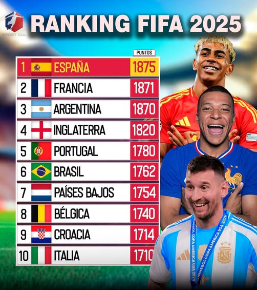 En el ranking de la FIFA para septiembre, las mejores Selecciones Nacionales de Fútbol son las de España, Francia y Argentina. Son también candidatas a ganar el Mundial del 2026 Publicada el 16 septiembre, 2025 Fuentes: SPORT GOL / FIFA Compartir en redes socialesTweet Share on Telegram (Se abre en una ventana nueva) Telegram Share on WhatsApp (Se abre en una ventana nueva) WhatsApp Me gusta esto:Me gusta Cargando... Relacionado Navegación de entradas « El Gobierno de Guanajuato acerca más de 16 mil 300 oportunidades laboralesHoy en día, se dispone de una clasificación de sismos, a partir de la intensidad; la escala máxima es de 10. Septiembre es un “mes de sismos”. »