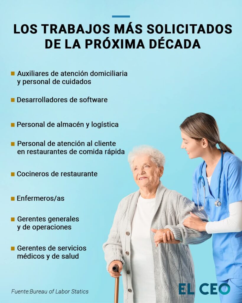 Entre los trabajos más solicitados actualmente, figura el del personal de cuidados Publicada el 8 octubre, 2025 Fuentes: Bureau of Labor Statics / El CEO Compartir en redes socialesTweet Share on Telegram (Se abre en una ventana nueva) Telegram Share on WhatsApp (Se abre en una ventana nueva) WhatsApp Me gusta esto:Me gusta Cargando... Relacionado Navegación de entradas « Tiene Guanajuato una cartera de 15 proyectos de energíaNuevo Chupícuaro, al recibir el nombramiento de “Pueblo con Encanto”, dispondrá de una mayor proyección turística. »