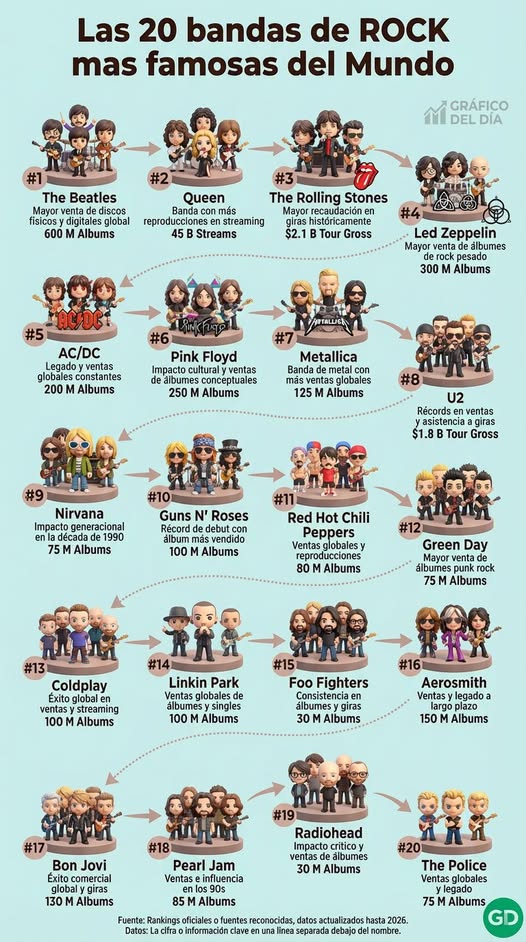 Habría 20 Bandas de Rock como las más famosas del mundo! Publicada el 9 marzo, 2026 Fuentes: GD / Redes Sociales Compartir en redes socialesTweet Share on Telegram (Se abre en una ventana nueva) Telegram Share on WhatsApp (Se abre en una ventana nueva) WhatsApp Me gusta esto:Me gusta Cargando... Relacionado Navegación de entradas « “Mi profe en línea”, un apoyo académico que llega a todos los rincones de GuanajuatoLos efectos del estrés se manifiestan en problemas del cerebro, el corazón y el sistema reproductor. »