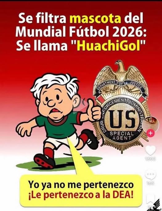 Humor, con verdad: La nueva Mascota del Mundial 2026 sería: “HuachiGol”. Publicada el 21 mayo, 2025 Fuente: Redes Sociales Compartir en redes socialesTweet Share on Telegram (Se abre en una ventana nueva) Telegram Share on WhatsApp (Se abre en una ventana nueva) WhatsApp Me gusta esto:Me gusta Cargando... Relacionado Navegación de entradas « El Inquisidor: Entregan electrificaciones a pobladores rurales de Acámbaro. El “Corralón”, una alternativa para la reubicación del comercio ambulante. “Detectan” los terrenos para la nueva vivienda popular de Acámbaro. “Muy elevadas”, las tarifas de Tránsito del Estado para las licencias de manejo.Organizan en las Escuelas la Jornada de Prevención de Adicciones »