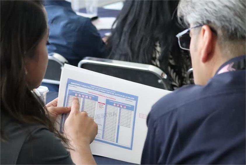 El Vocal Ejecutivo, Jaime Juárez Jasso, explicó que en la elección para elegir diversos cargos del Poder Judicial de la Federación, las personas recibirán seis boletas, uno para cada tipo de elección, las cuales cuentan con una identidad cromática para diferenciar cada una de las elecciones por las que se votará:
