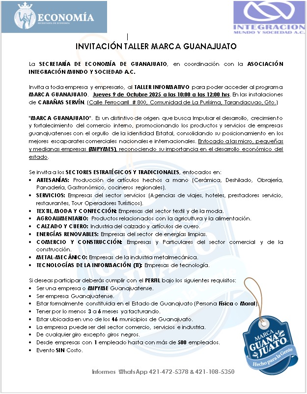 Invitan a reunión sobre la “Marca Guanajuato”. Es un apoyo estatal que ha permitido que las empresas se consoliden en el mercado regional y nacional