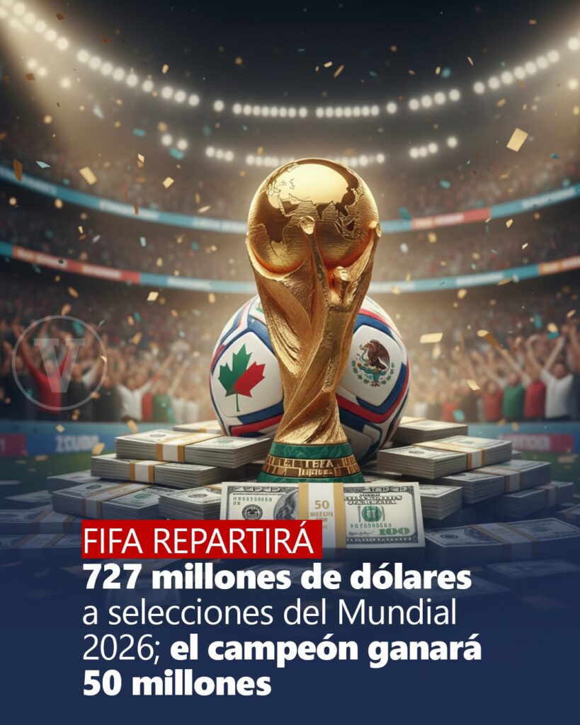 La FIFA obtendrá ingresos hasta por 16 mil millones de dólares, ero repartirá menos de 1 mil millones; el Campeón del “Mundial 2026” apenas recibirá 50 millones de dólares. Publicada el 11 enero, 2026 Fuentes: FIFA / FMF Compartir en redes socialesTweet Share on Telegram (Se abre en una ventana nueva) Telegram Share on WhatsApp (Se abre en una ventana nueva) WhatsApp Me gusta esto:Me gusta Cargando... Relacionado Navegación de entradas « Refrenda el Gobierno de Guanajuato el compromiso de apoyo a las y los paisanosLa Cruz Roja Mexicana, Delegación “Acámbaro”, ofrece servicio médico a la población. »