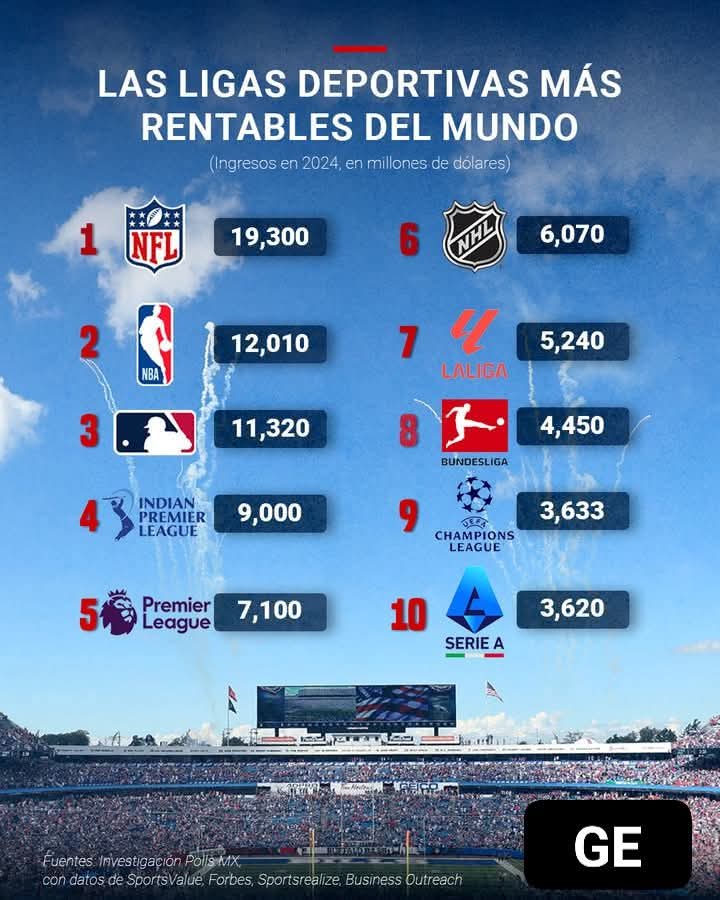 La NFL de Estados Unidos para el Fútbol Americano, es la más rentable a nivel internacional Publicada el 30 mayo, 2025 Fuentes: GE / Polis MX / Forbes Compartir en redes socialesTweet Share on Telegram (Se abre en una ventana nueva) Telegram Share on WhatsApp (Se abre en una ventana nueva) WhatsApp Me gusta esto:Me gusta Cargando... Relacionado Navegación de entradas « Si bien el América tiene más “títulos”, pero en forma polémica, el Guadalajara y el León los ganaron limpiamenteSigue la búsqueda de personas desaparecidas en Centros de Rehabilitación »