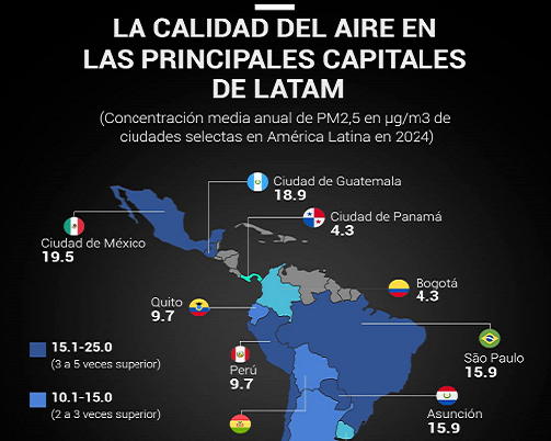 Las Ciudades de Panamá y de Bogotá son las que mejor calidad del aire tienen Publicada el 20 junio, 2025 Fuentes: IQAIR / EL CEO Compartir en redes socialesTweet Share on Telegram (Se abre en una ventana nueva) Telegram Share on WhatsApp (Se abre en una ventana nueva) WhatsApp Me gusta esto:Me gusta Cargando... Relacionado Navegación de entradas « Se advierte que el robo de cuenta de WhatsApp es real, por ello, es conveniente bloquear a usuarios sospechososQue hay más de 3 mil 650 hectáreas disponibles para proyectos de inversión en parques industriales »