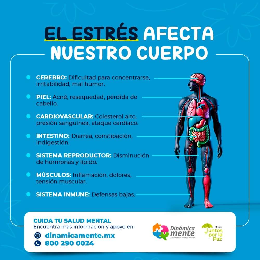Los efectos del estrés se manifiestan en problemas del cerebro, el corazón y el sistema reproductor. Publicada el 14 julio, 2025 Fuente: Secretaría de Salud del Estado de Guanajuato Compartir en redes socialesTweet Share on Telegram (Se abre en una ventana nueva) Telegram Share on WhatsApp (Se abre en una ventana nueva) WhatsApp Me gusta esto:Me gusta Cargando... Relacionado Navegación de entradas « Guanajuato rinde homenaje al magisterio con réplica de cancelación de estampillaGobierno de Guanajuato apuesta por la profesionalización en la obra pública »