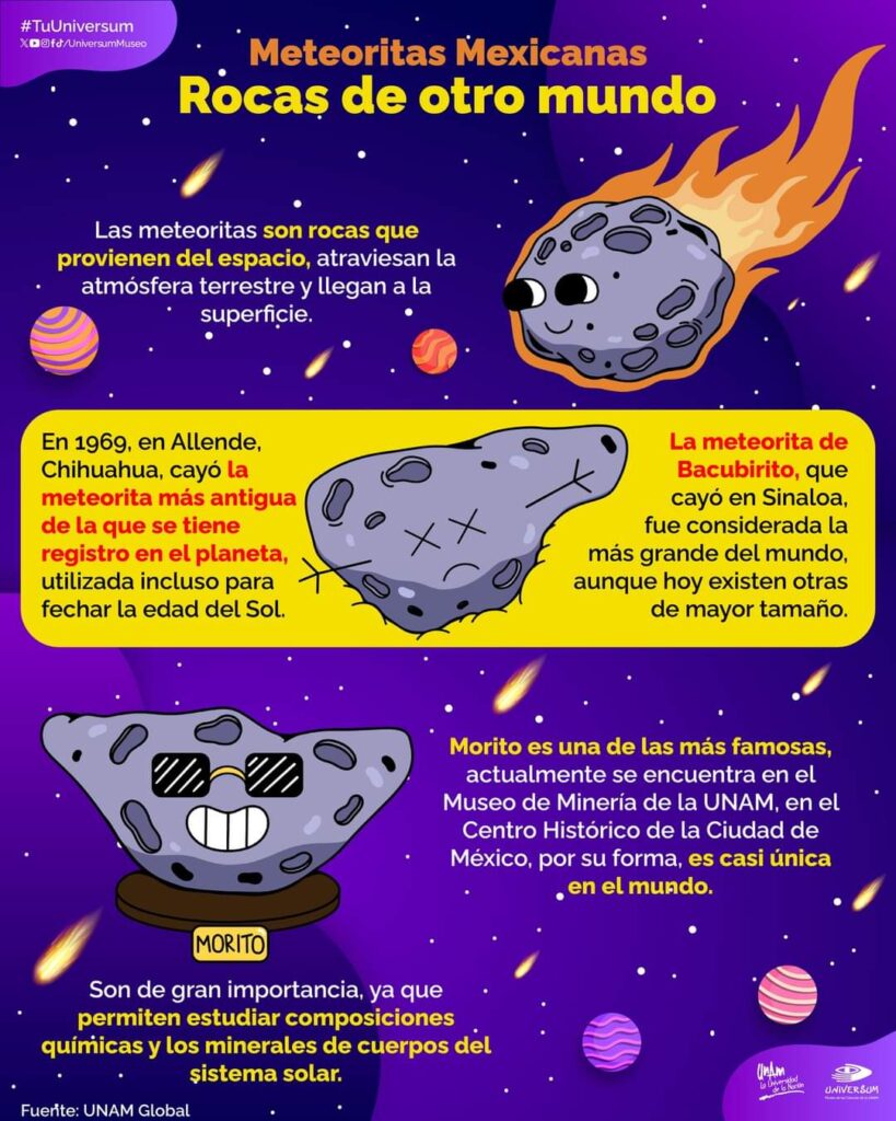 Los meteoritos son rocas de otro mundo; en México en 1969, se registró uno de los más grandes de la época Publicada el 21 abril, 2026 Fuentes: Universum / UNAM Compartir en redes socialesTweet Share on Telegram (Se abre en una ventana nueva) Telegram Share on WhatsApp (Se abre en una ventana nueva) WhatsApp Me gusta esto:Me gusta Cargando... Relacionado Navegación de entradas « El café Expreso y el Americano son de los más populares a nivel internacionalQue Guanajuato sigue fortaleciendo su crecimiento económico »