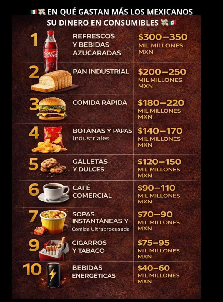 Los mexicanos gastan más en refrescos, comida y botanas Publicada el 27 marzo, 2026 Fuentes: Redes Sociales / Profeco Compartir en redes socialesTweet Share on Telegram (Se abre en una ventana nueva) Telegram Share on WhatsApp (Se abre en una ventana nueva) WhatsApp Me gusta esto:Me gusta Cargando... Relacionado Navegación de entradas « La iglesia católica ya tiene todo listo para la Semana Santa 2026; es del 29 de marzo al 5 de abrilEn Acámbaro: Integran el Consejo Consultivo de Turismo »
