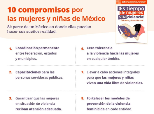 Mediante compromisos por las mujeres y las niñas, se busca dignificar sus derechos sociales y erradicar la violencia en su contra Publicada el 27 agosto, 2025 Fuente: Gobierno de México Compartir en redes socialesTweet Share on Telegram (Se abre en una ventana nueva) Telegram Share on WhatsApp (Se abre en una ventana nueva) WhatsApp Me gusta esto:Me gusta Cargando... Relacionado Navegación de entradas « El Inquisidor: Caos generalizado en Acámbaro por ‘tromba’, debido al periodo de lluvias. La pugna Guanajuato-Jalisco retrasaría la obra del Acueducto Solís-León. La ‘tromba’ del 24 de agosto recordó las carencias de infraestructura urbana. Un beneficio para Guanajuato, el Proyecto del Tren México-Querétaro-León.Siguen los trabajos de mantenimiento en la carretera Silao-San Felipe »