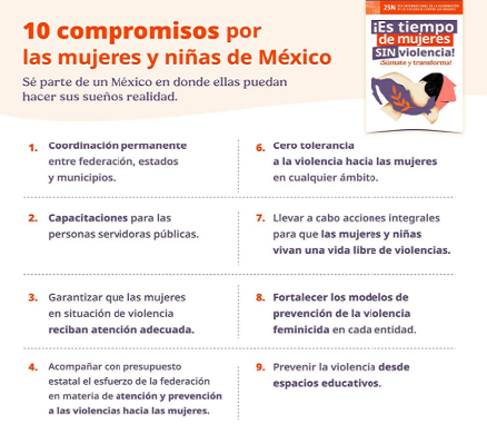 Mediante compromisos por las mujeres y las niñas, se busca dignificar sus derechos sociales y erradicar la violencia en su contra Publicada el 19 septiembre, 2025 Fuente: Gobierno de México Compartir en redes socialesTweet Share on Telegram (Se abre en una ventana nueva) Telegram Share on WhatsApp (Se abre en una ventana nueva) WhatsApp Me gusta esto:Me gusta Cargando... Relacionado Navegación de entradas « Los Centros Migrantes siembran oportunidades en GuanajuatoGuanajuato consolida su posición como líder en la inversión extranjera »