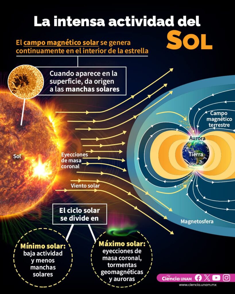 Muy intenso, es el ciclo solar. Conózcalo! Publicada el 21 noviembre, 2025 Fuente: Universidad Nacional Autónoma de México Compartir en redes socialesTweet Share on Telegram (Se abre en una ventana nueva) Telegram Share on WhatsApp (Se abre en una ventana nueva) WhatsApp Me gusta esto:Me gusta Cargando... Relacionado Navegación de entradas « Que la cerveza, el pan y el queso son de los alimentos más antiguos“Mi profe en línea”, un apoyo académico que llega a todos los rincones de Guanajuato »