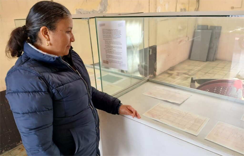 Anahí Bocanegra, Directora del Archivo Histórico, muestra los documentos sobre el historial de escuelas en Acámbaro