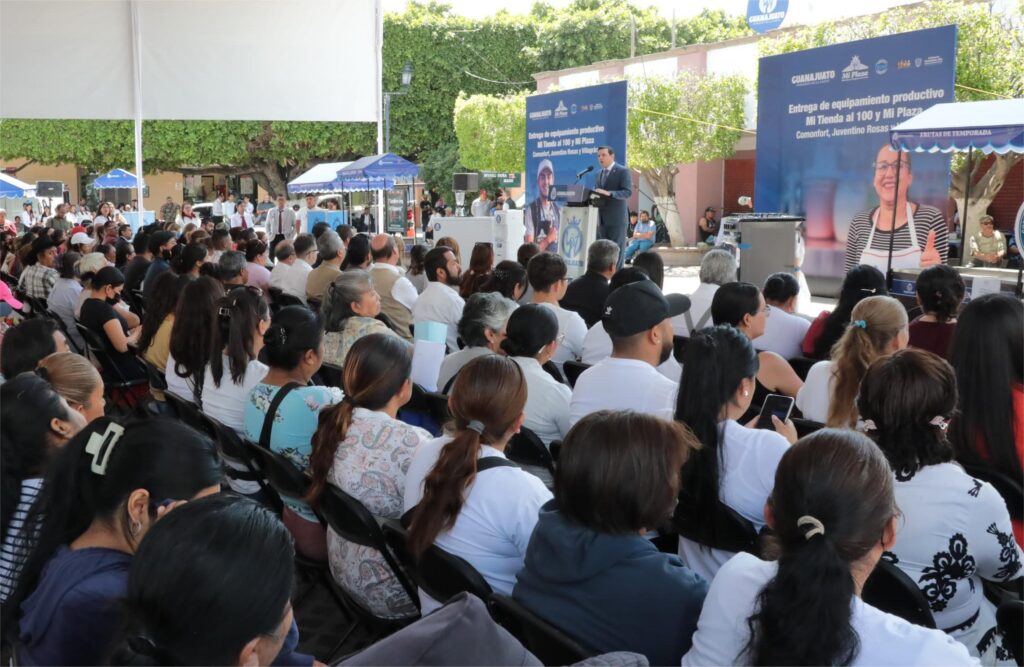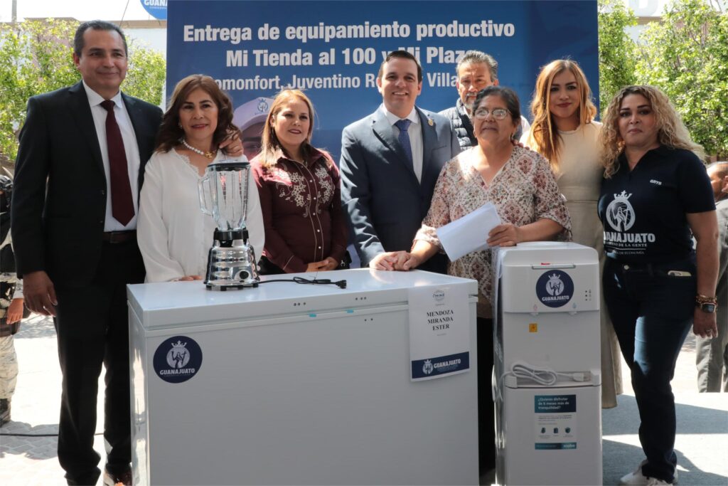 A su vez, en Comonfort, Jiménez Lona entregó apoyos de los programas “Mi tienda al 100” y “Mi plaza” para respaldar a las y los comerciantes con equipamiento y capacitación que les ayuden a avanzar en sus negocios, ofreciendo productos de calidad para bien de sus clientes y de sus municipios.