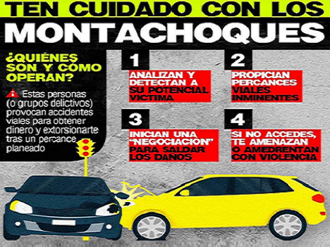 Se alerta contra los llamados: Montachoques, quienes propician accidentes para extorsionar a las víctimas Publicada el 2 octubre, 2025 Fuente: Periódico “La Jornada” Compartir en redes socialesTweet Share on Telegram (Se abre en una ventana nueva) Telegram Share on WhatsApp (Se abre en una ventana nueva) WhatsApp Me gusta esto:Me gusta Cargando... Relacionado Navegación de entradas « Que Guanajuato mantiene la generación de empleos formalesEntre los goleadores por décadas a nivel internacional, figura el mexicano Hugo Sánchez (1980-89) con 315 dianas »