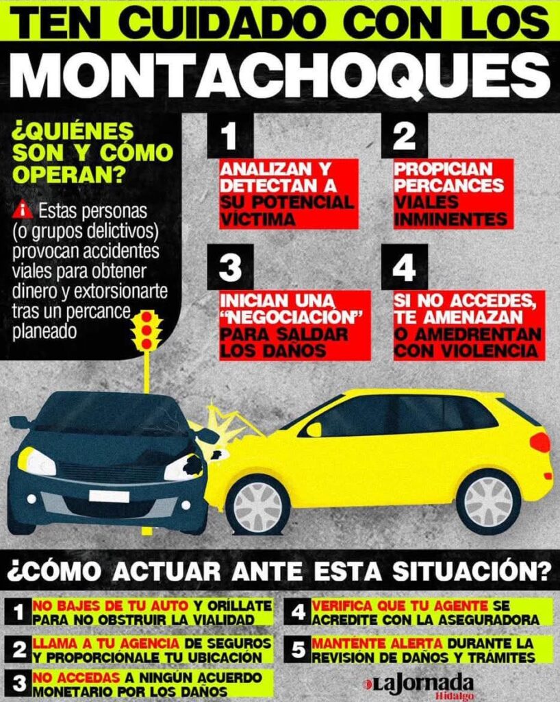 Se alerta contra los llamados: Montachoques, quienes propician accidentes para extorsionar a las víctimas Publicada el 23 octubre, 2025 Fuente: Periódico “La Jornada” Compartir en redes socialesTweet Share on Telegram (Se abre en una ventana nueva) Telegram Share on WhatsApp (Se abre en una ventana nueva) WhatsApp Me gusta esto:Me gusta Cargando... Relacionado Navegación de entradas « Vigente en el ciclo escolar 25-26, la promoción de alimentos saludables en las tiendas escolaresDe la CONAGUA y de la SEDENA, la maquinaria dañada en la presa “Solís” Se usa para la construcción del Acueducto Solís-León »