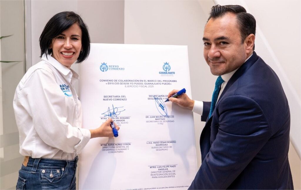 Guanajuato, Gto.- en un acto que materializa el compromiso del Gobierno estatal con una política pública centrada en las personas, la Secretaría del Nuevo Comienzo y la Secretaría de Seguridad y Paz firmaron un convenio de colaboración para implementar el programa “Yo Puedo, Guanajuato Puede”.