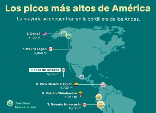 Son 9 los picos más altos del continente americano Publicada el 18 junio, 2025 Fuente: Natural Earth Data Compartir en redes socialesTweet Share on Telegram (Se abre en una ventana nueva) Telegram Share on WhatsApp (Se abre en una ventana nueva) WhatsApp Me gusta esto:Me gusta Cargando... Relacionado Navegación de entradas « La Cruz Roja Mexicana, Delegación “Acámbaro”, ofrece servicio médico a la población.El Inquisidor: Se reúnen Claudia “La Pollita” Silva y la Gobernadora Libia García. Destina el Ayuntamiento 4.5 millones de pesos para los grupos de la Feria 2025. La Prepa “Roja” de Acámbaro termina un turbulento período escolar. En julio, inicia la (esperada) construcción del Acueducto Solís-León. »