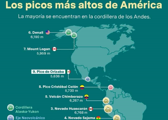 Son 9 los picos más altos del continente americano Publicada el 13 julio, 2025 Fuente: Natural Earth Data Compartir en redes socialesTweet Share on Telegram (Se abre en una ventana nueva) Telegram Share on WhatsApp (Se abre en una ventana nueva) WhatsApp Me gusta esto:Me gusta Cargando... Relacionado Navegación de entradas « Una vez más, el Conalep Guanajuato conquista un evento sobre robóticaGuanajuatense gana concurso artesanal en textiles y fibra comercial »
