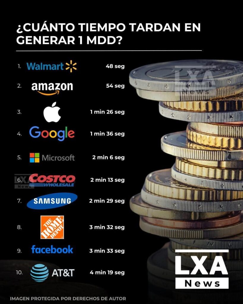 Walmart tarda 48 segundos en generar 1 millón de dólares, a través de sus empresas a nivel internacional Publicada el 14 agosto, 2025 Fuente: LXA News Compartir en redes socialesTweet Share on Telegram (Se abre en una ventana nueva) Telegram Share on WhatsApp (Se abre en una ventana nueva) WhatsApp Me gusta esto:Me gusta Cargando... Relacionado Navegación de entradas « Vigente, la BAIT de la PROFECO, una plataforma de conciliación en líneaRealizaron trabajos de bacheo y conservación del camino Inchamácuaro-Pejo »